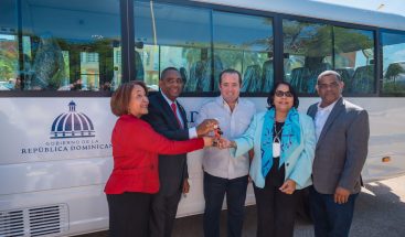 Administrativo de la Presidencia entrega autobuses para estudiantes y dinero a parroquias en la región Sur